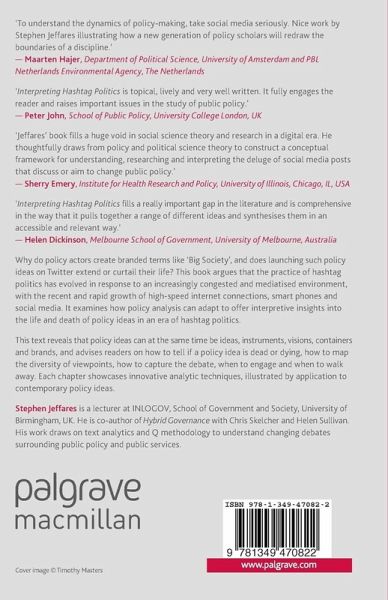 Why do policy actors create branded policy ideas like Big Society and does launching them on Twitter extend or curtail their life? This book reveals how policy analysis can adapt in an increasingly mediatised to offer interpretive insights into the life and death of policy ideas in an era of hashtag politics.