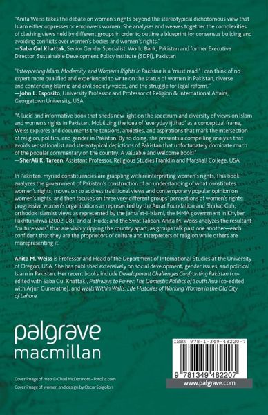 "Anita Weiss takes the debate on women's rights beyond the stereotypical dichotomous view that Islam either oppresses or empowers women. She analyses and weaves together the complexities of clashing views held by different groups in order to outline a blueprint for consensus building and avoiding conflicts over women's bodies and women's rights." - Saba Gul Khattak, Senior Gender Specialist, World Bank, Pakistan, and former Executive Director, Sustainable Development Policy Institute (SDPI), Pakistan