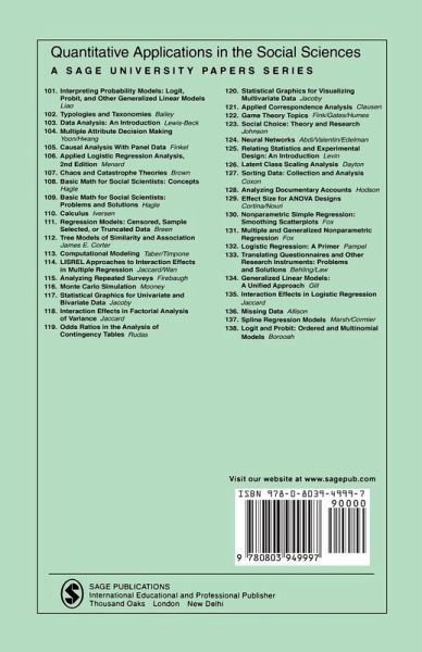What is the probability that something will occur, and how is that probability altered by a change in an independent variable? To answer these questions, Tim Futing Liao introduces a systematic way of interpreting commonly used probability models. Since much of what social scientists study is measured in noncontinuous ways and, therefore, cannot be analyzed using a classical regression model, it becomes necessary to model the likelihood that an event will occur. This book explores these models first by reviewing each probability model and then by presenting a systematic way for interpreting the results from each.