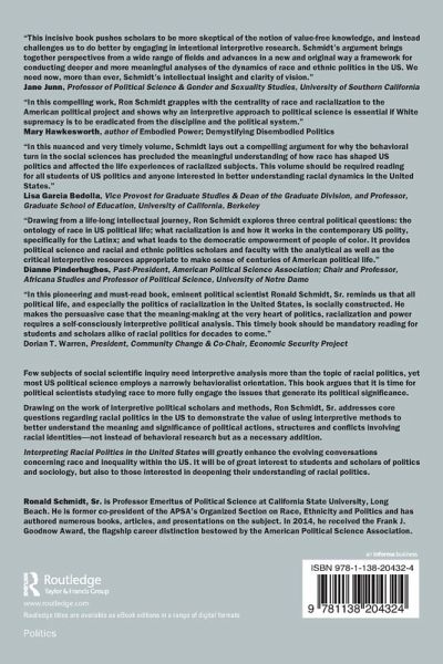 Few subjects of social scientific inquiry need interpretive analysis more than the topic of racial politics, yet most U.S. political science employs a narrowly behavioralist orientation. This book argues that it is time for political scientists studying race to more fully engage the issues that generate its political significance.
