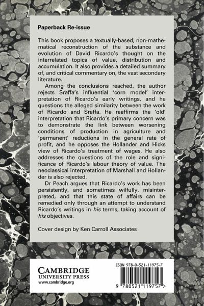 David Ricardo was the leading political economist of the early nineteenth century. This book presents a reconstruction of the substance and evolution of Ricardo's thought on the interrelated topics of value, distribution and accumulation. It also provides a detailed summary of, and critical commentary on, the vast secondary literature.