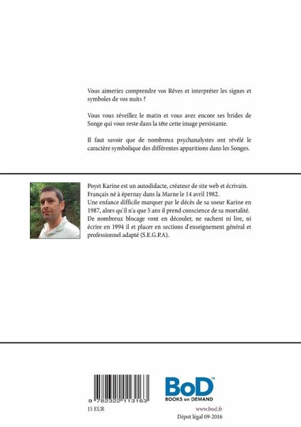 Vous aimeriez comprendre vos Rêves et interpréter les signes et symboles de vos nuits ?Vous vous réveillez le matin et vous avez encore ses brides de Songe qui vous reste dans la tête cette image persistante.Il faut savoir que de nombreux psychanalystes ont révélé le caractère symbolique des différentes apparitions dans les Songes.Avec cet ouvrage fini le pressentiment qu'il y a quelque chose que vous oubliez, ayez un temps d'avance sur votre destinée.L'interprétation des Songes permettra de comprendre votre destinée et les symboles mystiques qui nous sont donnés par nos anges de lumière.Le Songe dans l'Antiquité on parlait de songe c'est pour cela que dans ce premier ouvrage, j'utiliserai le terme sont.C'est après un long travail journalistique et littéraire, que je me suis aperçu qu'il fallait reprendre les définitions des Songes, à leurs origines.Car il aurait compté plus de 1200 pages !Donc en définitif j'ai préféré l'éditer sous la forme de Tome, celui-ci est le premier d'une longue série.Descendant d'une sixième génération de : Voyants - Magnétiseurs - Guérisseurs.De souche tziganes ayants traversés les frontières de l'Est à travers plusieurs pays et régions.Une arrière-arrière-grand-mère Russe, une arrière-grand-mère Tchèque, devenue Hongroise, elle s'est mariée à Horn, qui lui était Autrichien, ayant servi l'armée Autrichienne et demandé par l'armée Américaine. Mais pas seulement ! Il était le Chef-d 'Orchestre de la Cour Impériale de L'EMPEREUR François-Joseph D'Autriche...Vous pourrez retrouver Poyet Karine :http://poyet-karine.jimdo.com/http://antoine-dumanoir-horn.namehttp://voyance-pierre-horn.name