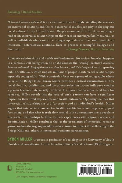 Romantic relationships and health are fundamental for society, but what happens to a person's well-being when he or she chooses the "wrong" partner? Interracial Romance and Health: Bridging Generations, Race Relations, and Well-Being tackles this growing public health issue, which impacts millions of people in interracial relationships, especially young adults. With a particular focus on a group of young adults whom he calls the Bridge Kids, Byron Miller provides a critical examination of how racial identity, socialization, and the partner selection process influence whether a person becomes interracially involved. For those that do cross racial lines for romance, Miller reveals that the race of one's partner can have a significant impact on their lived experiences and health outcomes. Opposing the idea that interracial relationships are bad for society and an individual's health, Miller argues that interracial romance has health benefits for some, is generally good for society, and that what is truly detrimental is the unnecessary stress people in interracial relationships feel due to their experiences with stigma, racism, and discrimination. Miller concludes that as the prevalence of interracial romance grows, so does the urgency to address these issues to protect the well-being of the Bridge Kids and others in interracial romantic partnerships.