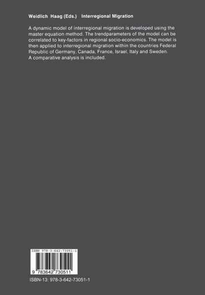 In part I of this book a dynamic migratory model connecting the microlevel of individual migration trends with the macrolevel of interregional migration is developed. Its derivation makes use of the master equation method. Applying a ranking regression analysis, the trend parameters of the model are correlated to regional socio-economic key factors. In part II the model is applied to interregional migration within the countries Federal Republic of Germany, Canada, France, Israel, Italy and Sweden. In part III a comparative analysis of the results is given. In part IV a selfcontained derivation of the master equation and of solutions relevant for the migratory system is given, the ranking regression analysis is exemplified and a computer program for the estimation of trendparameters is added.