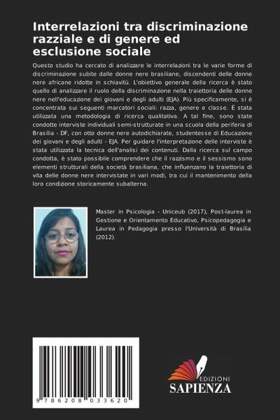 Questo studio ha cercato di analizzare le interrelazioni tra le varie forme di discriminazione subite dalle donne nere brasiliane, discendenti delle donne nere africane ridotte in schiavitù. L'obiettivo generale della ricerca è stato quello di analizzare il ruolo della discriminazione nella traiettoria delle donne nere nell'educazione dei giovani e degli adulti (EJA). Più specificamente, si è concentrata sui seguenti marcatori sociali: razza, genere e classe. È stata utilizzata una metodologia di ricerca qualitativa. A tal fine, sono state condotte interviste individuali semi-strutturate in una scuola della periferia di Brasília - DF, con otto donne nere autodichiarate, studentesse di Educazione dei giovani e degli adulti - EJA. Per guidare l'interpretazione delle interviste è stata utilizzata la tecnica dell'analisi dei contenuti. Dalla ricerca sul campo condotta, è stato possibile comprendere che il razzismo e il sessismo sono elementi strutturali della società brasiliana, che influenzano la traiettoria di vita delle donne nere intervistate in vari modi, tra cui il mantenimento della loro condizione storicamente subalterna.
