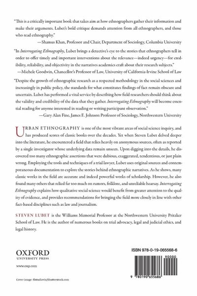 In this comprehensive review of urban ethnography, Steven Lubet encountered a field that relies heavily on anonymous sources, often as reported by a single investigator whose underlying data remain unseen. Upon digging into the details, he discovered too many ethnographic assertions that were dubious, exaggerated, tendentious, or just plain wrong. Employing the tools and techniques of a trial lawyer, Lubet uses original sources and contemporaneous documentation to explore the stories behind ethnographic narratives. Many turn out to be accurate, but others are revealed to be based on rumors, folklore, and unreliable hearsay. Interrogating Ethnography explains how qualitative social science would benefit from greater attention to the quality of evidence, and provides recommendations for bringing the field more closely in line with other fact-based disciplines such as law and journalism.