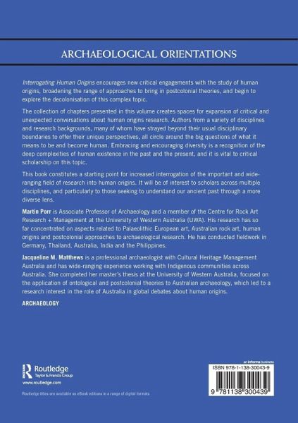 Interrogating Human Origins encourages new critical engagements with the study of human origins, broadening the range of approaches to bring in postcolonial theories, and beginning to explore the decolonisation of this complex topic.