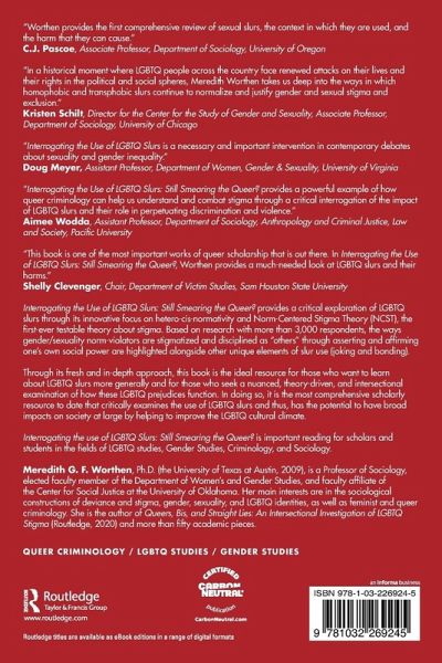 Interrogating the Use of LGBTQ Slurs provides a critical exploration of LGBTQ slurs through its innovative focus on hetero-cis-normativity and Norm-Centered Stigma Theory (NCST), the first ever testable theory about stigma.