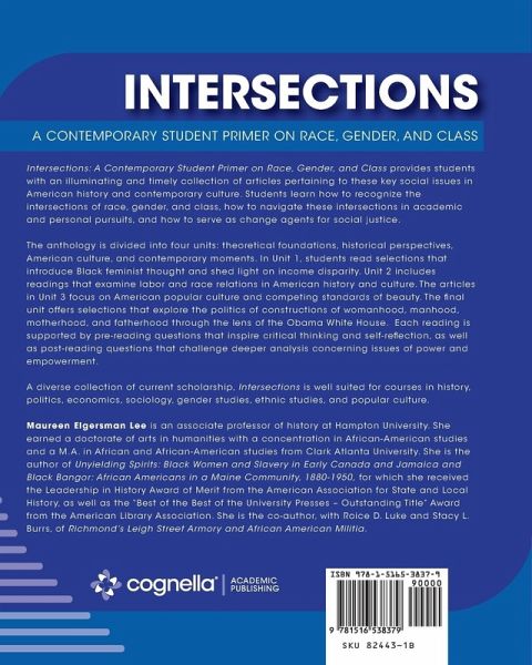 Intersections: A Contemporary Student Primer on Race, Gender, and Class provides students with an illuminating and timely collection of articles pertaining to these key social issues in American history and contemporary culture. Students learn how to recognize the intersections of race, gender, and class, how to navigate these intersections in academic and personal pursuits, and how to serve as change agents for social justice. The anthology is divided into four units: theoretical foundations, historical perspectives, American culture, and contemporary moments. In Unit 1, students read selections that introduce Black feminist thought and shed light on income disparity. Unit 2 includes readings that examine labor and race relations in American history and culture. The articles in Unit 3 focus on American popular culture and competing standards of beauty. The final unit offers selections that explore the politics of constructions of womanhood, manhood, motherhood, and fatherhood through the lens of the Obama White House. Each reading is supported by pre-reading questions that inspire critical thinking and self-reflection, as well as post-reading questions that challenge deeper analysis concerning issues of power and empowerment. A diverse collection of current scholarship, Intersections is well suited for courses in history, politics, economics, sociology, gender studies, ethnic studies, and popular culture. Maureen Elgersman Lee is an associate professor of history at Hampton University. She earned a doctorate of arts in humanities with a concentration in African-American studies and a M.A. in African and African-American studies from Clark Atlanta University. She is the author of Unyielding Spirits: Black Women and Slavery in Early Canada and Jamaica and Black Bangor: African Americans in a Maine Community, 1880-1950, for which she received the Leadership in History Award of Merit from the American Association for State and Local History, as well as the "Best of the Best of the University Presses – Outstanding Title" Award from the American Library Association. She is the co-author, with Roice D. Luke and Stacy L. Burrs, of Richmond’s Leigh Street Armory and African American Militia.