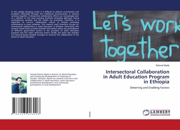 In this rapidly changing world, it is difficult to address uncertainties and problems effectively through the traditional bureaucracies; it requires working together. Intersectoral collaborative efforts are increasingly seen as a solution to the most pressing problems (including illiteracy), facing contemporary societies and the results are promising. Therefore, it is important to nurture collaborative culture to achieve promising achievements in every endeavor. This research work therefore focuses on intersectoral collaboration in adult education in Ethiopia. Particularly, this research based book provides detailed information about the participation of different government sectors in the provision of adult education program and the major deterring factors. Finally, the book also pointed out research-based possible strategies to enhance the collaboration of the sectors in adult education.