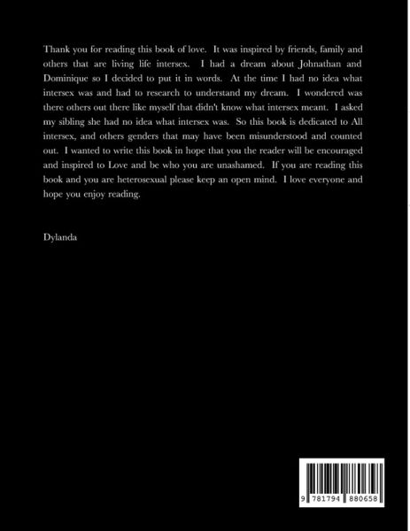 This book is about an intersex girl that meets a man and falls deeply in love. She is frightened to tell him about her secret and past. Johnathan has some secrets of his own, but he is madly in love with Dominique and is willing to share everything with her. This is their journey of love, pain, secrets, doubts and finally honesty. Come join their journey of self-discovery and finally love. This is Book One and Book Two will come out in 2025 continue to follow their Journey.