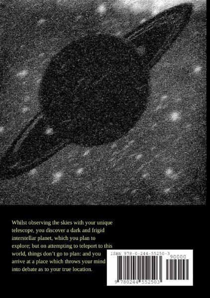 An illustrated 732 page fantasy gamebook with 777 sections. YOU are a scientist; an expert in astronomy and teleportation. Originating from a planet similar to Earth, you have explored many worlds within your solar system. However, your home-planet, Terra, and its neighbouring worlds exist in a parallel universe to that of Earth's. Observing the skies with your unique telescopic equipment, you discover a dark and frigid interstellar planet, which you plan to explore; but on attempting to teleport to this world, things don't go to plan, and you arrive at a place which throws your mind into debate as to your true location. Here you discover a unique atmosphere and environment. There are many paths you may take on your epic travels through this interactive novel, and you will encounter horrors in the form of madness, monstrous creatures, and criminality from both Terran and alien peoples; but there are also plenty of helpful beings. See the PREVIEW beneath the cover image.