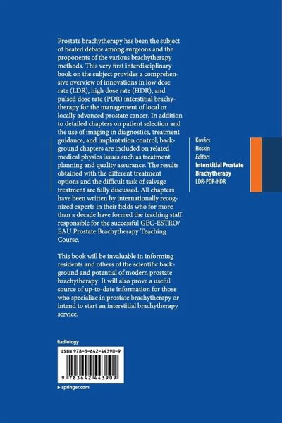 Prostate brachytherapy has been the subject of heated debate among surgeons and the proponents of the various brachytherapy methods. This very first interdisciplinary book on the subject provides a comprehensive overview of innovations in low dose rate (LDR), high dose rate (HDR), and pulsed dose rate (PDR) interstitial brachytherapy for the management of local or locally advanced prostate cancer. In addition to detailed chapters on patient selection and the use of imaging in diagnostics, treatment guidance, and implantation control, background chapters are included on related medical physics issues such as treatment planning and quality assurance. The results obtained with the different treatment options and the difficult task of salvage treatment are fully discussed. All chapters have been written by internationally recognized experts who for more than a decade have formed the teaching staff responsible for the successful GEC-ESTRO/EAU Prostate Brachytherapy Teaching Course.