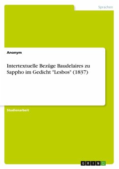 Studienarbeit aus dem Jahr 2024 im Fachbereich Französische Philologie - Linguistik, Note: 2.0, , Sprache: Deutsch, Abstract: Die griechische Dichterin Sappho ist eine der bedeutendsten Lyrikerinnen der Antike und prägt die europäische Literatur noch Jahrhunderte nach ihrem Tod. Ihre Gedichte, in denen sie vor allem die bittersüße Facette der Liebe und der Begierde, sowie die gleichgeschlechtliche Liebe thematisiert, wurden bereits ab dem 15. Jahrhundert in Literatur, Dichtung und Musik rezipiert. Besonders ihre Darstellung der Liebe als ambivalentes Gefühl zwischen Freude und Schmerz findet großen Anklang, unter anderem bei Charles Baudelaire (1821-1867), einem der bedeutendsten französischen Dichter des 19. Jahrhunderts. In seinem vom Realismus geprägten Gedicht Lesbos aus dem Jahr 1837 greift er diese literarische Tradition auf und setzt sich auf besondere Weise mit Sapphos Werk auseinander. Baudelaire beschreibt die Insel, ähnlich wie Sappho, als Schauplatz der Begierde und verbindet geographische Schönheit mit tiefen emotionalen Themen und übernimmt dabei zentrale Motive der griechischen Dichterin, wie beispielsweise den "bittersüßen" Aspekt der Liebe. Die vorliegende Arbeit soll durch eine detaillierte Analyse verschiedener Aspekte untersuchen, inwiefern Baudelaire in seinem Gedicht die sapphische Dichtung aufgreift und sich stilistisch als auch inhaltlich mit den Fragmenten auseinandersetzt. Zunächst sollen jeweils Baudelaires wie auch Sapphos Werke vorgestellt werden. Die darauf aufbauende Textanalyse konzentriert sich auf die inhaltliche und stilistische Analyse des Gedichtes Lesbos, den Vergleich mit ausgewählten Fragmenten aus Sapphos Gedichten sowie die Darstellung der Liebesgeschichte von Sappho und Phaon in Ovids Briefen der Leidenschaft. Abschließend soll in einer kurzen Zusammenfassung der Ergebnisse die Frage beantwortet werden, inwiefern sich in Baudelaires Gedicht Lesbos die sprachlichen und thematischen Elemente der sapphischen Dichtung widerspiegeln.