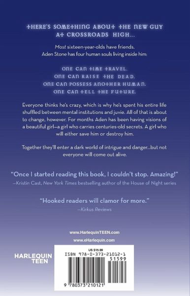 There's something about the new guy at Crossroads High… Most sixteen-year-olds have friends. Aden Stone has four human souls living inside him: One can time travel. One can raise the dead. One can possess another human. One can tell the future. Everyone thinks he's crazy, which is why he's spent his entire life shuffled between mental institutions and juvie. All of that is about to change, however. For months Aden has been having visions of a beautiful girl-a girl who carries centuries-old secrets. A girl who will either save him or destroy him. Together they'll enter a dark world of intrigue and danger…but not everyone will come out alive.