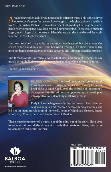 Awakening comes at different times and in different ways. This is the story of one women's quest for greater knowledge of the higher unknown spiritual world. Her husband's death in an auto accident followed by her daughter's near death two years and two days later marked her awakening. There was something larger, much bigger than her research had shown, and she would travel the world in search of this higher wisdom. Her quest touched many cultures and much was learned, but the answer she searched for would not come from her world travels. On a short 130-mile trip from her home, the greater awakening occurred and thus completed Intertwines. The threads of life-physical and spiritual, past and present-merge as she travels through lifetimes and discovers the blending of two diverse cultures. Prepare to be awakened.