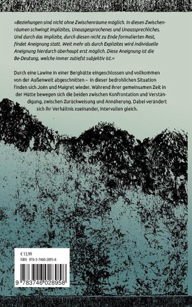 "Wie lange können wir hier überleben?""Wen meinst du, dich oder mich?""Was soll das denn jetzt heißen?""Na, was meinst du, wen deine schlechte Laune eher umbringt, dich oder mich?""Keine Ahnung! Außerdem habe ich keine schlechte Laune.""Aha? Sondern?""Ich bin sauer.""Auf mich wirkt's wie schlechte Laune.""Ja klar, weil du keine Ahnung hast, wie's in mir aussieht!"Joën und Maigret werden von einer Lawine in einer Berghütte eingeschlossen und sind vollkommen von der Außenwelt abgeschnitten. Sie wissen nicht, ob sie diesen Ort jemals wieder lebend verlassen werden. In der Hütte finden sie ein rätselhaftes Manuskript, das sie dazu anregt über ihr bisheriges Leben und über ihre Wertvorstellungen nachzudenken.Während ihrer gemeinsamen Zeit in der Hütte bewegen sich die beiden zwischen Konfrontation und Verständigung, zwischen Zurückweisung und Annäherung. Dabei verändert sich ihr Verhältnis zueinander, Intervallen gleich.