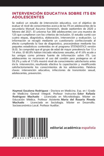 Se realizó un estudio de intervención educativa, con el objetivo de evaluar el nivel de conocimientos acerca de las ITS en adolescentes de la secundaria Manuel Ascunce Domenech, desde septiembre de 2020 a febrero del 2021. El universo fue 380 adolescentes con una muestra de 125 que cumplieron con los criterios de inclusión. El estudio contó con cuatro etapas, diagnóstica, elaboración, intervención y evaluación. La información se recogió mediante un cuestionario confeccionado al efecto cumpliendo la fase de diagnóstico, procesándose mediante los paquetes estadísticos contenidos en el programa STSTADISTICS versión (6.0). Se comprobó que el grupo de edad de mayor prevalencia fue 13 a 14 años. El 60.8% habían iniciado relaciones sexuales, el 41.6% acude a los amigos como primera fuente de información sobre ITS. Los adolescentes no reconocen el uso del condón para protegerse en el 59.2% y solo el 17.6% mostró nivel de conocimiento satisfactorio antes de la intervención, resultando efectiva la capacitación y modificando satisfactoriamente los conocimientos de los adolescentes. Palabras claves: intervención educativa, infecciones de transmisión sexual, adolescentes, prevención.