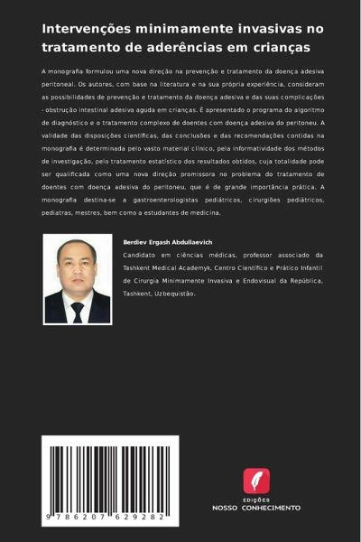 A monografia formulou uma nova direção na prevenção e tratamento da doença adesiva peritoneal. Os autores, com base na literatura e na sua própria experiência, consideram as possibilidades de prevenção e tratamento da doença adesiva e das suas complicações - obstrução intestinal adesiva aguda em crianças. É apresentado o programa do algoritmo de diagnóstico e o tratamento complexo de doentes com doença adesiva do peritoneu. A validade das disposições científicas, das conclusões e das recomendações contidas na monografia é determinada pelo vasto material clínico, pela informatividade dos métodos de investigação, pelo tratamento estatístico dos resultados obtidos, cuja totalidade pode ser qualificada como uma nova direção promissora no problema do tratamento de doentes com doença adesiva do peritoneu, que é de grande importância prática. A monografia destina-se a gastroenterologistas pediátricos, cirurgiões pediátricos, pediatras, mestres, bem como a estudantes de medicina.
