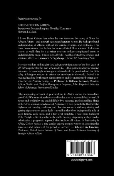 As the Cold War faded, Ambassador Hank Cohen, President George Bush's Assistant Secretary of State for Africa, engaged in aggressive diplomatic intervention in Africa's civil wars. In this revealing book Cohen tells how he and his Africa Bureau team operated in seven countries in crisis: Angola, Ethiopia, Liberia, Mozambique, Rwanda, Somalia, and Sudan. He candidly characterizes key personalities and events and provides a treasure trove of lessons learned and basic principles for practitioners of conflict resolution within states.