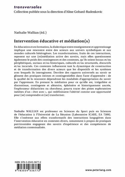 Nathalie WALLIAN est professeur en Sciences du sport puis en Sciences de l'éducation à l'Université de La Réunion (Laboratoire ICARE, EA 7389). Elle s'intéresse aux effets des interactions langagières sur les divers acteurs dans le cadre de l¿intervention éducative, dans des contextes divers, se focalisant notamment sur les pratiques (patrimoniales) liées à des savoirs expérientiels et des compétences de médiation contextualisée.