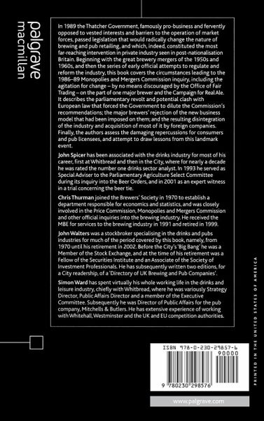 This is the story of the radical intervention carried out by the Thatcher administration in response to 1986-89 Monopolies and Mergers Commission inquiry into brewing. It describes the creation of big brewers, the official investigations into what many saw as an uncompetitive structure and the damaging consequences for consumers and licensees.