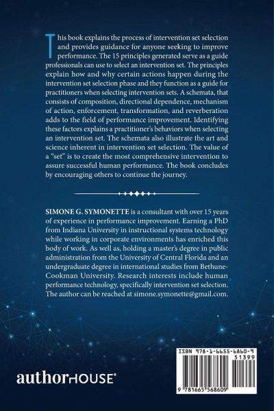 This book explains the process of intervention set selection and provides guidance for anyone seeking to improve performance. The 15 principles generated serve as a guide professionals can use to select an intervention set. The principles explain how and why certain actions happen during the intervention set selection phase and they function as a guide for practitioners when selecting intervention sets. A schemata, that consists of composition, directional dependence, mechanism of action, enforcement, transformation, and reverberation adds to the field of performance improvement. Identifying these factors explains a practitioner's behaviors when selecting an intervention set. The schemata also illustrate the art and science inherent in intervention set selection. The value of a "set" is to create the most comprehensive intervention to assure successful human performance. The book concludes by encouraging others to continue the journey.