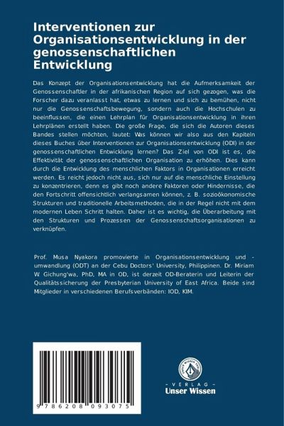 Das Konzept der Organisationsentwicklung hat die Aufmerksamkeit der Genossenschaftler in der afrikanischen Region auf sich gezogen, was die Forscher dazu veranlasst hat, etwas zu lernen und sich zu bemühen, nicht nur die Genossenschaftsbewegung, sondern auch die Hochschulen zu beeinflussen, die einen Lehrplan für Organisationsentwicklung in ihren Lehrplänen erstellt haben. Die große Frage, die sich die Autoren dieses Bandes stellen möchten, lautet: Was können wir also aus den Kapiteln dieses Buches über Interventionen zur Organisationsentwicklung (ODI) in der genossenschaftlichen Entwicklung lernen? Das Ziel von ODI ist es, die Effektivität der genossenschaftlichen Organisation zu erhöhen. Dies kann durch die Entwicklung des menschlichen Faktors in Organisationen erreicht werden. Es reicht jedoch nicht aus, sich nur auf die menschliche Einstellung zu konzentrieren, denn es gibt noch andere Faktoren oder Hindernisse, die den Fortschritt offensichtlich verlangsamen können, z. B. sozioökonomische Strukturen und traditionelle Arbeitsmethoden, die in der Regel nicht mit dem modernen Leben Schritt halten. Daher ist es wichtig, die Überarbeitung mit den Strukturen und Prozessen der Genossenschaftsorganisationen zu verknüpfen.