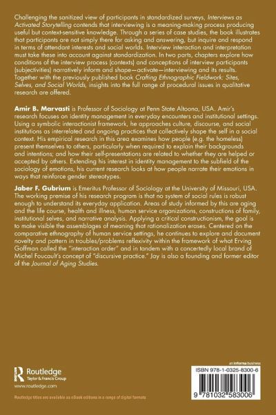 Challenging the static view of the respondent that characterizes standardized research interviews, Interviews as Activated Storytelling demonstrates through a series of case studies that interviews are interactional, meaning-making processes that produce useful but context-sensitive knowledge.