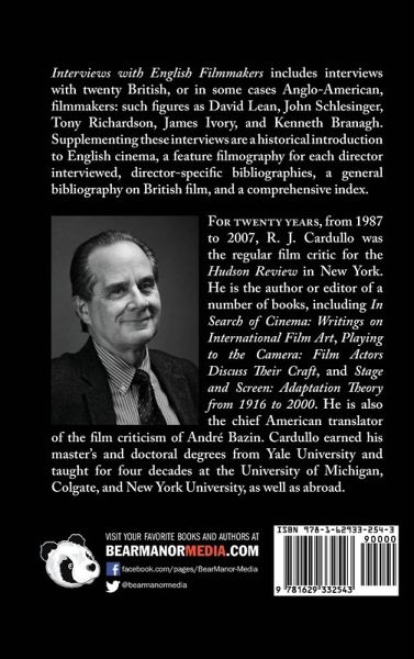 Interviews with English Filmmakers: Powell to Pawlikowski includes interviews with seventeen British filmmakers: Michael Powell, Carol Reed, David Lean, Charles Crichton, Jack Clayton, Lindsay Anderson, Karel Reisz, John Schlesinger, Ken Russell, Tony Richardson, Ken Loach, Stephen Frears, Peter Greenaway, Mike Leigh, Terence Davies, Pawel Pawlikowski, and Kenneth Branagh. Also included are interviews with the following three Anglo-American directors: Joseph Losey, James Ivory, and Richard Lester. Supplementing all of these interviews are a historical introduction to English cinema, a feature filmography for each director interviewed, director-specific bibliographies, a general bibliography on British film, and a comprehensive index. Interviews with English Filmmakers: Powell to Pawlikowski is hardly designed to be an exhaustive book on the art of British film, but it is intended to be a representative one. Moreover, it is not an erudite or pedantic tome targeted only at a limited audience of specialists. Instead, this volume is meant to be a highly accessible yet subtly expressive and copiously illustrated collection of interviews, all of which deal with cinematic (as well as dramatic) questions of interest to many cultivated readers and spectators—not just British ones. Interviews with English Filmmakers is thus aimed at students, teachers, cinephiles, and educated individuals with an interest in British cinema in particular and global cinema in general, in addition to those readers with an interest in the practice of film directing and production as well as film analysis and criticism. The author of many essays and articles over the years, R. J. Cardullo has had his work appear in such journals as the Yale Review, Cineaste, Film Quarterly, and Cinema Journal. For twenty years, from 1987 to 2007, he was the regular film critic for the Hudson Review in New York. Cardullo is the author or editor of a number of books, including In Search of Cinema: Writings on International Film Art, Playing to the Camera: Film Actors Discuss Their Craft, and Stage and Screen: Adaptation Theory from 1916 to 2000. He is also the chief American translator of the film criticism of the Frenchman André Bazin, with several volumes to his credit, among them Bazin at Work: Major Essays and Reviews from the ’40s and ’50s and André Bazin and Italian Neorealism.