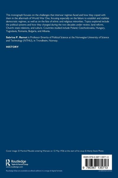 This monograph focuses on the challenges that interwar regimes faced and how they coped with them in the aftermath of World War One, focusing especially on the failure to establish and stabilize democratic regimes, as well as on the fate of ethnic and religious minorities. Topics explored include the political systems and how they changed during the two decades under review, land reform, Church-state relations, and culture. Countries studied include Poland, Czechoslovakia, Hungary, Yugoslavia, Romania, Bulgaria, and Albania. "Sabrina Ramet has assembled a team of highly respectable country specialists to offer a fresh and historiographically updated reading of interwar developments in East Central Europe. The volume is bookended by two excellent comparative and theoretically informed essays carefully weighing the multiplicity of factors contributing to the instability of the interwar regimes. As a result this survey succeeds admirably in producing a nuanced narrative and analysis." - Maria Todorova, University of Illinois at Urbana-Champaign, USA Sabrina Ramet, together with a roster of other eminent scholars, has produced an exciting new history of interwar East Central Europe. The volume has a clear focus on the failure of democracy (1918 to 1941), and on the bedeviling issues of ethnic minorities and of peasants; the latter made up an overwhelming majority of much of the region's population. The book will be of great interest to political scientists and historians of East Central Europe, and of Europe more generally, and it is perfect for classroom use. - Irina Livezeanu, University of Pittsburgh, USA