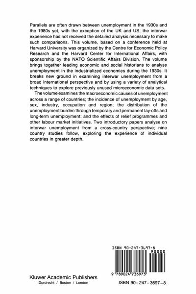 1 Interwar Unemployment in International Perspective: An Overview.- 1 Introduction.- 2 The Emergence of the Problem.- 3 Aggregate Unemployment Statistics.- 4 Labour Demand and Supply.- 5 Unemployment and Labour Market Adjustment.- 6 The Incidence of Unemployment.- 7 Labour Turnover and Unemployment Duration.- 8 The Effects of Unemployment.- 9 Conclusion.- 2 The Macroeconomics of the Interwar Years: International Comparisons.- 1 Introduction.- 2 Relative International Performance in the Great Depression.- 3 A Model of the Open Economy, World Prices Given.- 4 Estimation Results.- 5 The World.- 6 Concluding Remarks.- 3 Labour Market Structure and the Nature of Unemployment in Interwar Britain.- 1 Introduction.- 2 Stocks, Rows and Duration of Unemployment.- 3 Who Were the Unemployed?.- 4 Unemployment in the 1930s and the 1980s: Some Comparisons.- 5 The Causes of Long-Term Unemployment.- 6 The Sources of Rapid Turnover.- 7 Conclusion.- 4 Unemployment, Insurance and Health in Interwar Britain.- 1 Introduction.- 2 The Causes of Poverty.- 3 The Results of Unemployment.- 4 Unemployment and Stature.- 5 National Socialist Economics: The Wirtschaftswunder Reconsidered.- 1 Introduction.- 2 National Socialist Work Creation Measures, 1933-35.- 3 National Socialist Labour Market Statistics.- 6 Unemployment in the 1930s: The Case of Italy.- 1 The Great Depression and Unemployment: An Unexplored Territory.- 2 Italy's Labour Market Between the Wars.- 3 Measuring Industrial Unemployment.- 4 Fascism and Unemployment.- 5 An Appraisal of Labour Policies.- 6 Unemployment and Wages.- 7 Some Concluding Remarks.- 7 Why Was Unemployment so Low in France During the 1930s?.- 1 Introduction.- 2 Macroeconomic Developments and the Labour Market Statistics.- 3 The Measurement of FrenchUnemployment.- 4 Analysis by Occupation and by Département of Unemployment in France During the 1930s.- 5 The Employment Relationship and Unemployment in the 1930s.- 6 Conclusion.- 8 Interwar Unemployment in Belgium.- 1 Introduction.- 2 Institutional Aspects of Unemployment in Belgium, 1920-39: The System of Voluntary Unemployment Insurance.- 3 Quantitative Aspects of Unemployment in Belgium, 1920-39.- 4 Structural Aspects of Unemployment in Belgium, 1930-37.- 5 Conclusion.- 9 Interwar Unemployment in the United States: Evidence from the 1940 Census Sample.- 1 Introduction.- 2 The Data.- 3 Multivariate Analysis.- 4 Implications.- 5 The Added Worker Effect: Labour Force Participation of Married Women.- 6 Concluding Remarks.- 10 Unemployment and Relief in Canada.- 1 Introduction.- 2 The Incidence of Unemployment.- 3 Coping with the Depression.- 4 Conclusions.- 11 The Australian and US Labour Markets in the 1930s.- 1 Introduction.- 2 The Australian-US Comparisons.- 3 Further Observations on Unemployment in Australia.- 4 Conclusion.