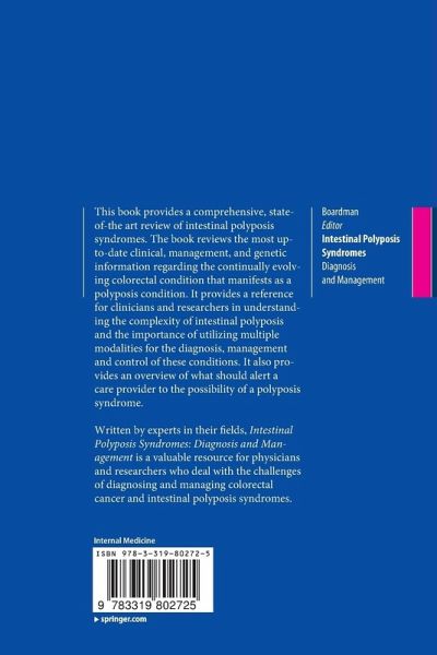 Written by experts in their fields, Intestinal Polyposis Syndromes: Diagnosis and Management is a valuable resource for physicians and researchers who deal with the challenges of diagnosing and managing colorectal cancer and intestinal polyposis syndromes.