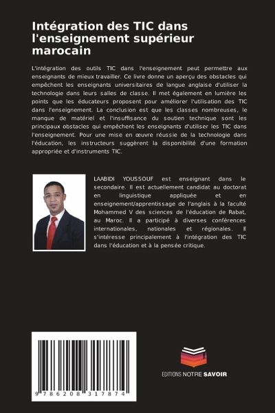 L'intégration des outils TIC dans l'enseignement peut permettre aux enseignants de mieux travailler. Ce livre donne un aperçu des obstacles qui empêchent les enseignants universitaires de langue anglaise d'utiliser la technologie dans leurs salles de classe. Il met également en lumière les points que les éducateurs proposent pour améliorer l'utilisation des TIC dans l'enseignement. La conclusion est que les classes nombreuses, le manque de matériel et l'insuffisance du soutien technique sont les principaux obstacles qui empêchent les enseignants d'utiliser les TIC dans l'enseignement. Pour une mise en oeuvre réussie de la technologie dans l'éducation, les instructeurs suggèrent la disponibilité d'une formation appropriée et d'instruments TIC.