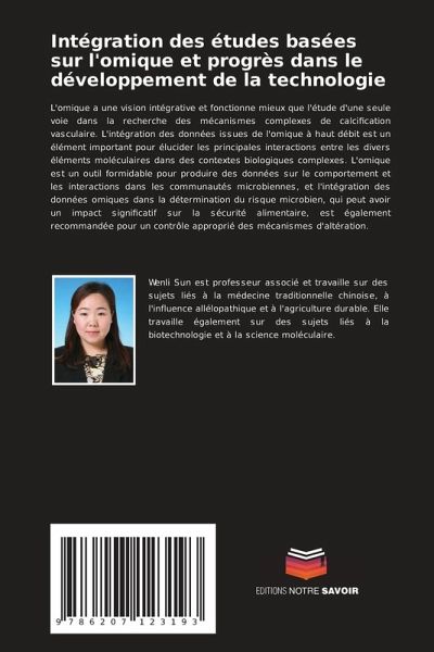 L'omique a une vision intégrative et fonctionne mieux que l'étude d'une seule voie dans la recherche des mécanismes complexes de calcification vasculaire. L'intégration des données issues de l'omique à haut débit est un élément important pour élucider les principales interactions entre les divers éléments moléculaires dans des contextes biologiques complexes. L'omique est un outil formidable pour produire des données sur le comportement et les interactions dans les communautés microbiennes, et l'intégration des données omiques dans la détermination du risque microbien, qui peut avoir un impact significatif sur la sécurité alimentaire, est également recommandée pour un contrôle approprié des mécanismes d'altération.