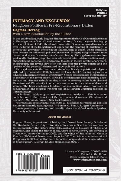 In this pathbreaking work, Dagmar Herzog situates the birth of German liberalism in the religious conflicts of the nineteenth century. During the years leading up to the revolutions of 1848, liberal and conservative Germans engaged in a contest over the terms of the Enlightenment legacy and the meaning of Christianity--a contest that grew most intense in the Grand Duchy of Baden, where liberalism first became an influential political movement. Bringing insights drawn from Jewish and women's studies into German history, Herzog demonstrates how profoundly Christianity's problematic relationships to Judaism and to sexuality shaped liberal, conservative, and radical thought in the pre-revolutionary years. In particular, she reveals how often conflicts over the private sphere and the "politics of the personal" determined larger political matters.Herzog documents the unexpected rise of a politically sophisticated religious right led by conservative Catholics, and explores liberals' ensuing eagerness to advance a humanist version of Christianity. Yet she also examines the limitations at the heart of the liberal project, as well as the difficulties encountered by philo-Semitic and feminist radicals as they strove to reconceptualize both classical liberalism and Christianity in order to make room for the claims of Jews and women. The book challenges fundamental assumptions about processes of secularization and religious renewal and about Jewish-Christian relations in German history.