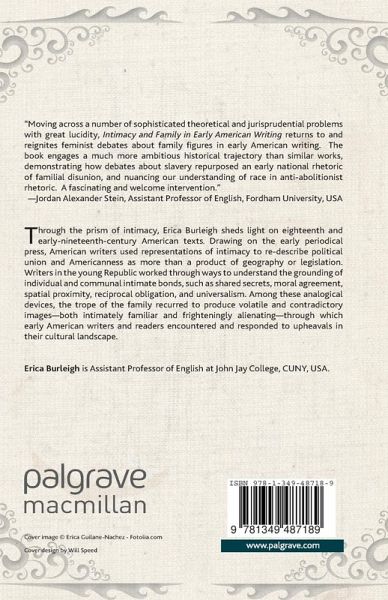 'Moving across a number of sophisticated theoretical and jurisprudential problems with great lucidity, Erica Burleigh's Intimacy and Family in Early American Writing returns to and reignites feminist debates about family figures in early American writing. The book engages a much more ambitious historical trajectory than similar works, demonstrating how debates about slavery repurposed an early national rhetoric of familial disunion, and nuancing our understanding of race in anti-abolitionist rhetoric. A fascinating and welcome intervention.' Jordan Alexander Stein, Assistant Professor of English, Fordham University, USA