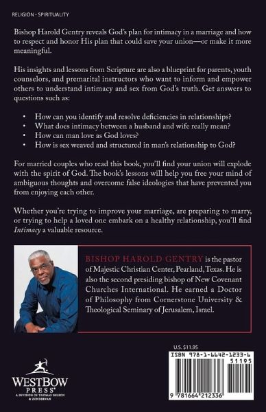 Bishop Harold Gentry reveals God's plan for intimacy in a marriage and how to respect and honor His plan that could save your union-or make it more meaningful. His insights and lessons from Scripture are also a blueprint for parents, youth counselors, and premarital instructors who want to inform and empower others to understand intimacy and sex from God's truth. Get answers to questions such as: ¿ How can you identify and resolve deficiencies in relationships? ¿ What does intimacy between a husband and wife really mean? ¿ How can man love as God loves? ¿ How is sex weaved and structured in man's relationship to God? For married couples who read this book, you'll find your union will explode with the spirit of God. The book's lessons will help you free your mind of ambiguous thoughts and overcome false ideologies that have prevented you from enjoying each other. Whether you're trying to improve your marriage, are preparing to marry, or trying to help a loved one embark on a healthy relationship, you'll find Intimacy a valuable resource.