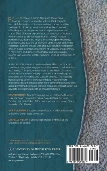 Foreword: Let It Get Into You Deborah Kapchan Acknowledgements Introduction: On Intimate Entanglements Sidra Lawrence 1. Yusef's Breath: Jazz Love, Cross-Racial Identification, and Paying Dues Tracy McMullen 2. Three Reflections, with Epilogue Steven Cornelius 3. Modulating Flawed Bodies: Intimate Acoustemologies, Chronic Pain, and Ethnographic Pianism Mark Lomanno 4. Performing Desire: Race, Sex, and the Ethnographic Encounter Sidra Lawrence 5. Thick Descriptions Catherine M. Appert 6. Entering the Lives of Others: Entangled Intimacies, Trauma, and Performance Ama Oforiwaa Aduonum 7. Ethnomusicological Empathy: Excavating a Black Graduate Student's Heartland Danielle Davis 8. Ethnomusicological Becoming: Deep Listening as Erotics in the Field Carol Muller 9. Mirror Dancing in Congo: Reflections on Fieldwork as Blanche Neige Lesley N. Braun 10. Ethnography and Its Double(s): Theorizing the Personal with Jews in Ghana Michelle Kisliuk Notes on Contributors Index