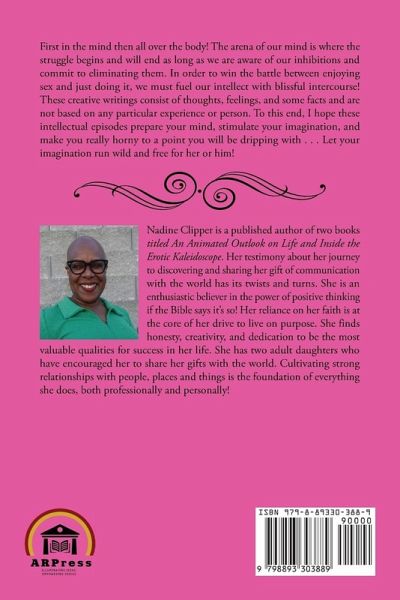 First in the mind then all over the body! The arena of our mind is where the struggle begins and will end as long as we are aware of our inhibitions and commit to eliminating them. In order to win the battle between enjoying sex and just doing it, we must fuel our intellect with blissful intercourse! These creative writings consist of thoughts, feelings, and some facts and are not based on any particular experience or person. To this end, I hope these intellectual episodes prepare your mind, stimulate your imagination, and make you really horny to a point you will be dripping with . . . Let your imagination run wild and free for her or him!