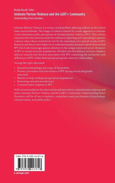 Intimate Partner Violence is a serious social problem affecting millions in the United States and worldwide. The image of violence enacted by a male aggressor to a female victim dominates public perceptions of intimate partner violence (IPV). This volume examines how this heteronormativity influences reporting and responding to partner violence when those involved do not fit the stereotype of a typical victim of IPV. Research and theory have helped us to understand power dynamics about heterosexual IPV; this book encourages greater attention to the unique issues and power dynamics of IPV in sexual minority populations. Divided into five distinct sections, chapters address research and theories associated with IPV, examining the similarities and differences of IPV within heterosexual and gender minority relationships.