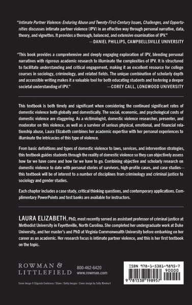 This textbook is both timely and significant when considering the continued significant rates of domestic violence both globally and domestically. The social, economic, and psychological costs of domestic violence are staggering. As a victimologist, domestic violence researcher, presenter, and moderator on this violence, as well as a survivor of serious physical, emotional, and financial relationship abuse, Laura Elizabeth combines her academic expertise with her personal experiences to illuminate the intricacies of this type of violence. From basic definitions and types of domestic violence to laws, services, and intervention strategies, this textbook guides students through the reality of domestic violence so they can objectively assess how far we have come and how far we have to go. Combining objective and scholarly research on domestic violence to date, with personal stories of survivors, high-profile cases, and case studies, this textbook will be of interest to a number of disciplines from criminology and criminal justice to sociology and gender studies.