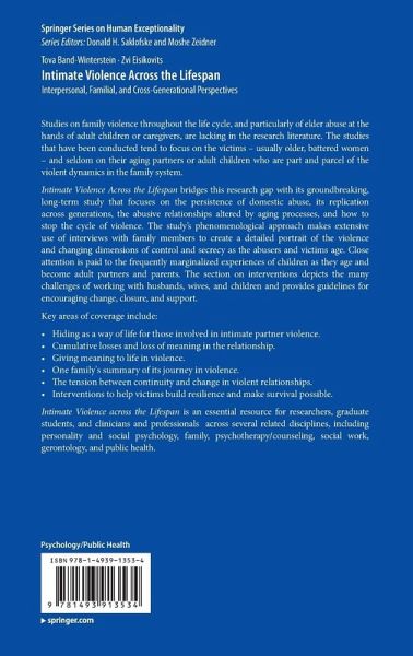 The relatively intense preoccupation with elder abuse in the gerontological literature in recent years has not specifically addressed long-term intimate violence among the old adults and its lasting consequences. Similarly, the literature on intimate intergenerational relationships in old age has usually focused on normative exchanges between partners and their extended family, including their adult children. Therefore, conflictive relationships, and particularly violent ones, have also fallen outside the scope of this body of research. This volume describes and analyzes the various perspectives of family members concerning life, and particularly old age, in the shadow of long-term intimate violence. It explores how people make sense out of living and aging in violence, how interpersonal, familial and cross-generational relationships are perceived and reconstructed and how "we-ness" is achieved, if at all, in such families.