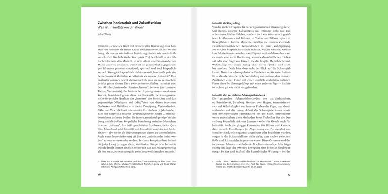 Dieses Buch zeigt auf, warum professionelle Intimitätskoordination unerlässlich ist: Sie ermöglicht sichere Rahmenbedingungen für alle Beteiligten einer Theater-, Opern- oder Filmproduktion und schafft einen künstlerischen Freiraum, der intime Szenen überzeugend werden lässt. Das Buch liefert unverzichtbares Wissen für alle Intimitätskoodinator:innen, Schauspieler:innen, Regisseur:innen, Produzent:innen und Intendant:innen.