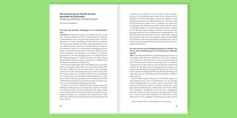 Mit der Intimitätskoordination hat sich in den vergangenen Jahren ein neuer Beruf entwickelt, dessen Ziel es ist, Film- und Bühnenproduktionen bei der Inszenierung intimer Szenen zu unterstützen und die übereinstimmende Zusammenarbeit aller Beteiligten zu gewährleisten. Dabei ist die Mitarbeit an der künstlerischen Vision der Produktionen fester Bestandteil des Berufsbildes. Während auf den Sets in den USA und Großbritannien längst mit Intimitätskoordinator:innen gearbeitet wird, steckt ihre Integration hierzulande jedoch in den Anfängen. Dieser Ratgeber beleuchtet erstmals die Entwicklung des Berufes im deutschsprachigen Raum und zeigt seine Vorteile auf. Er führt in die Grundlagen und Methoden der Intimitätskoordination ein und beantwortet zentrale Fragen: Wann und warum sollte mit Intimitätskoordinator:innen gearbeitet werden? Wie gestaltet sich die Arbeitsweise? Welche Methoden und Techniken kommen in der Praxis zum Einsatz? Mit welchen Gewerken wird wie zusammengearbeitet? Welche Unterschiede bestehen zwischen Film und Bühne? Wie ist die Ausbildung von Intimitätskoordinator:innen organisiert?