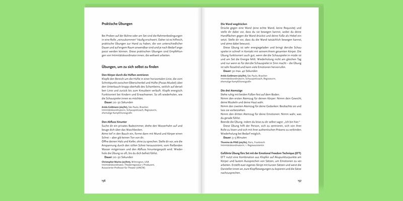 Renommierte Expert:innen teilen in diesem Buch ihre Erfahrungen, stellen Best Practices vor und erläutern bewährte Methoden für die Praxis. Vom genauen Vorgehen im konsensbasierten Arbeiten über sachliche Sprache bis hin zur Erarbeitung spezifischer Choreografien jeder Beitrag beleuchtet einen zentralen Aspekt des Berufs. Ebenso wird die Darstellung queerer Intimität, kultureller Unterschiede und sexualisierter Gewalt eingehend behandelt. Ein umfassender Anhang bietet ein Glossar wichtiger Begriffe, Übersichten zu Weiterbildungsmöglichkeiten und relevanten Verbänden, weiterführende Literatur sowie Beispielmaterialien.