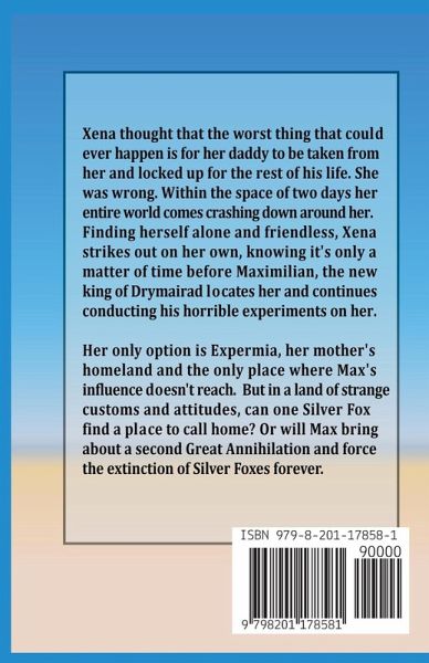 Xena thought that the worst thing that could ever happen is for her daddy to be taken from her and locked up for the rest of his life. She was wrong. Within the space of two days her entire world comes crashing down around her. Finding herself alone and friendless, Xena strikes out on her own, knowing its only a matter of time before Maximilian, the new king of Drymairad, locates her and returns to conducting horrible experiments on her. Her only option is Expermia, her mother's homeland and the only country in the world where Max's influence cannot reach. But in a land of strange customs and attitudes, can one Silver Fox find a place to call home? Or will Max bring about a second Great Annihilation and force the extinction of all Silver Foxes forever? Author rating: T+