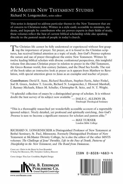 The Christian life cannot be fully understood or experienced without first grasping the importance of prayer. Yet prayer, as it is found in the Christian scriptures, has received limited attention as a topic of study. Into God's Presence explores the nature and use of prayer throughout the entire New Testament. Written by twelve leading biblical scholars with diverse confessional perspectives, this insightful volume first discusses Christian prayer in relation to prayer in the Old Testament, the Greco-Roman world, first-century Judaism, and the Dead Sea Scrolls. The rest of the book takes an instructive look at prayer as it appears from Matthew to Revelation, with special attention given to Jesus as an exemplar and teacher of prayer.