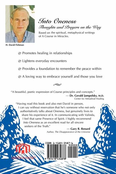 Into Oneness, Thoughts and Prayers on the Way is based on the meta-physical spiritual teachings of A Course in Miracles. It's foundation is the realization of our connectedness through the concept of Oneness. Into Oneness promotes healing in relationships and provides a foundation to remember the peace within and how to utilize it to lighten your day. The paperback book presents 307 pages filled with messages of joy. Every page offers a key to the reader to unlock themselves from this world of illusion and choose peace for himself and all those he meets. Into Oneness is a very friendly and loving way to embrace yourself and those you love, as you walk together on the path to Inner Peace. Definitely a book to share with those you love.