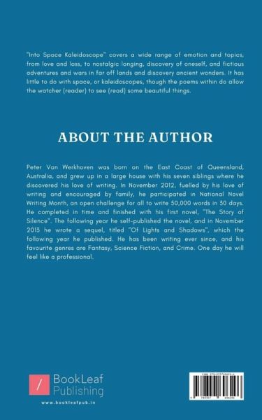 "Into Space Kaleidoscope" covers a wide range of emotion and topics, from love and loss, to nostalgic longing, discovery of oneself, and fictious adventures and wars in far off lands and discovery ancient wonders. It has little to do with space, or kaleidoscopes, though the poems within do allow the watcher (reader) to see (read) some beautiful things.